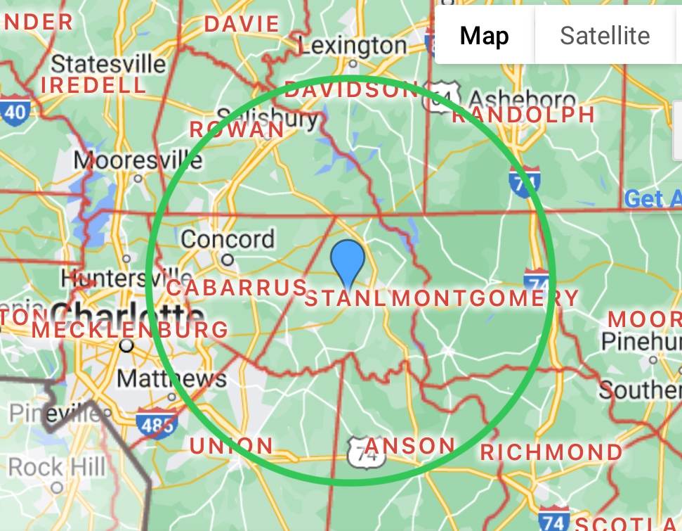 Albemarle, Concord, Kannapolis, Charlotte, Harrisburg, Mint Hill, Landis, Unionville, Fairview, Granite Quarry, Southmont, Stanfield, Salisbury, Mt. Gilead,